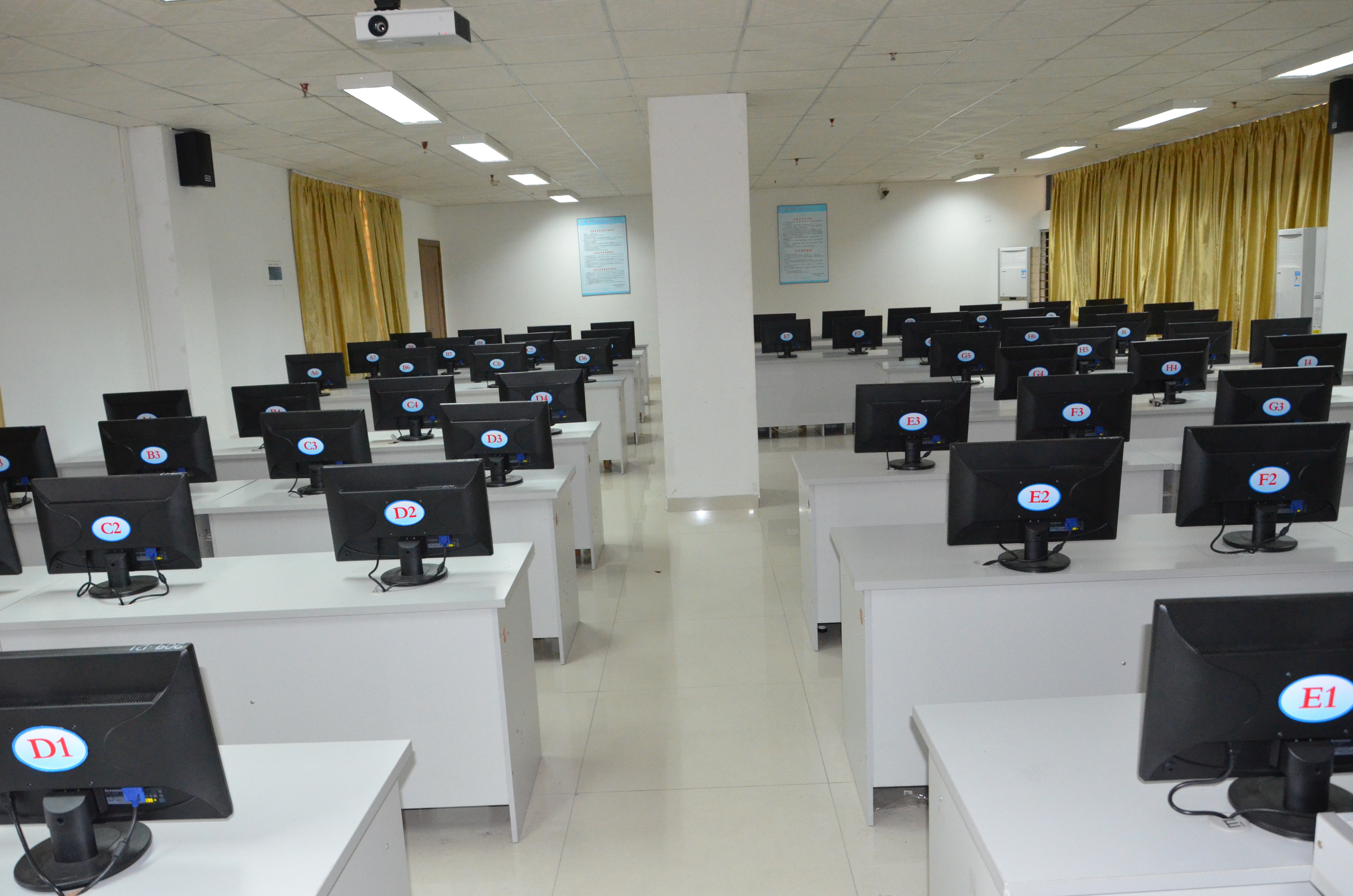 主要设备:学生机72台,教师机1台,计算机基础服务器2台,教学服务器1台,学院FTP服务器1台,投影仪等多媒体教学设备