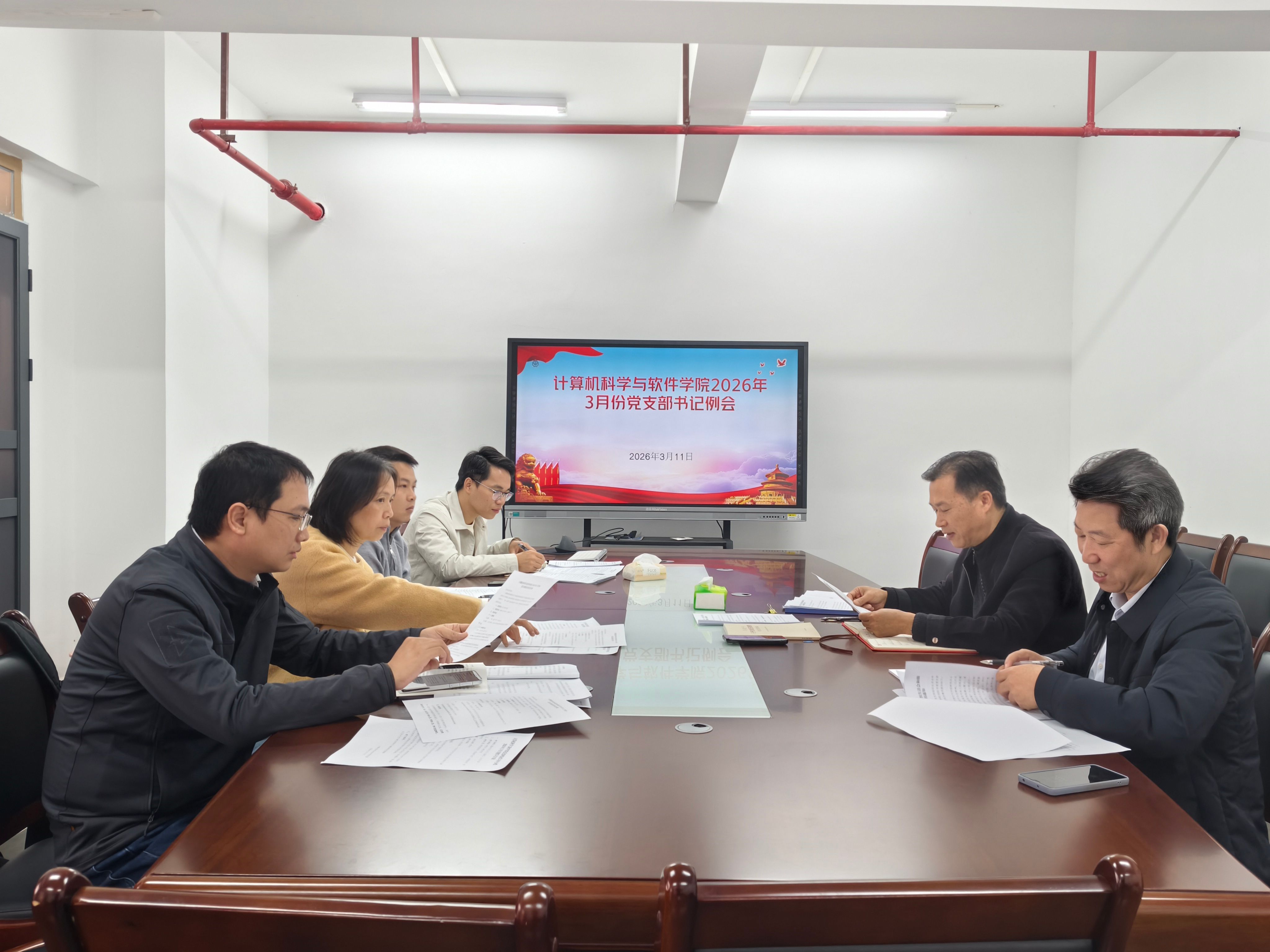 会上,首先集中学习了《实干担当 为民造福——习近平总书记引领全党树立和践行正确政绩观》等重要论述。学习结束后,黎天宇对2026年3月份的党建工作作了布置,主要工作有:一是按学院党委的统一部署完成好3月份的“三会一课”、第一议题和主题党日等活动;二是各支部要按要求及时组织召开树立和践行正确政绩观学习教育动员部署会;三是各支部要认真按照学院党委《关于开好2025年度党支部组织生活会和做好民主评议党员工作的通知》要求做好党支部组织生活会和民主评议党员工作;四是各级党建“双创”培育创建单位要认真对照培育创建要求及中期、期满考核验收条件要求,落实各项培育创建工作任务,确保顺利通过考核验收;五是要求做好入党申请人员谈话、确定入党积极分子等相关事宜,确保展环节规范严谨、程序到位;六是要求各支部认真组织与谋划撰写党建思政案例、思政论文、思政课题,争取新一年获得更好的党建成果。